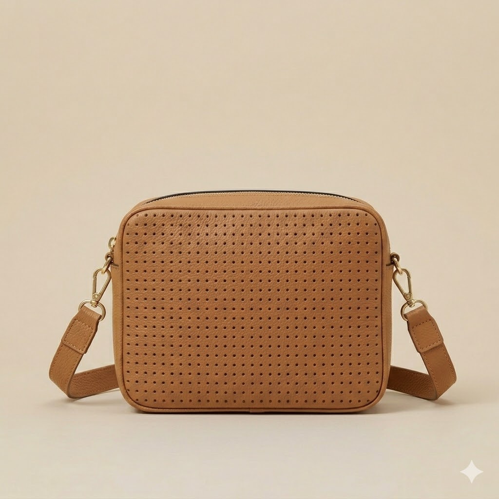 Esta bandolera cuadrada de Paniculatta shop confeccionada en suave antelina, combina elegancia clásica con un toque moderno y veraniego gracias a su patrón calado de mini cuadritos. Su diseño compacto y funcional la hace perfecta para el día a día, asegurando comodidad sin renunciar al estilo.