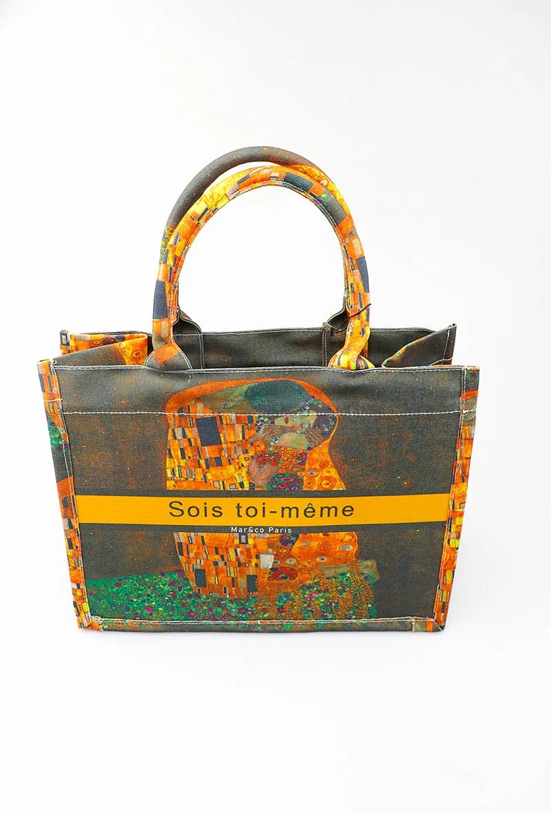 Bolso Mediano con Impresión de “El Beso” – Klimt perteneciente a la colección de arte de Paniculatta Una pieza que fusiona arte y funcionalidad. Este bolso mediano está impreso con la icónica pintura El Beso de Gustav Klimt, convirtiéndose en un accesorio que transmite pasión, elegancia y estilo.»Una pieza que fusiona arte y funcionalidad. Este bolso mediano está impreso con la icónica pintura El Beso de Gustav Klimt, convirtiéndose en un accesorio que transmite pasión, elegancia y estilo. Ideal para amantes del arte, mujeres creativas y espíritus románticos que buscan destacar con un toque único.