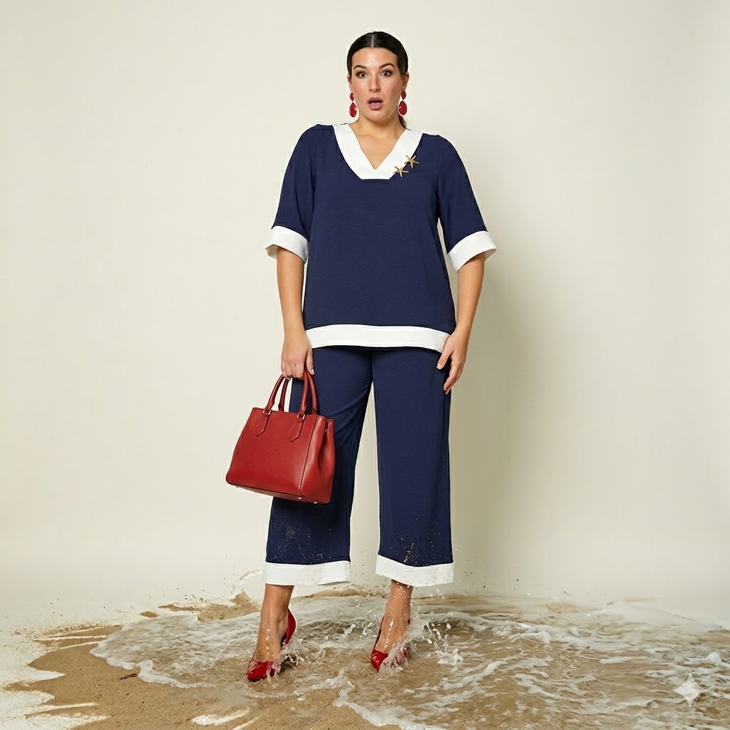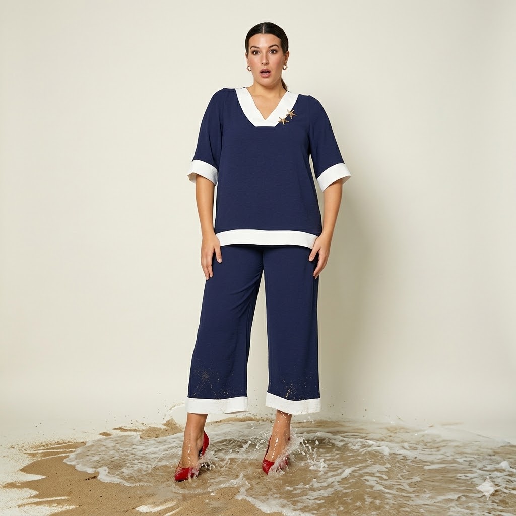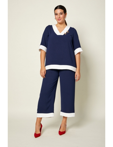 Un conjunto versátil, elegante y fácil de llevar, perfecto para celebraciones, cenas especiales o cualquier ocasión donde quieras destacar con discreción y buen gusto, con broche dorado removible y pantalón tobillero con goma en la cintura. Un conjunto elegante, cómodo y muy fácil de llevar, con un diseño actual que favorece en todas las tallas. Ideal para celebraciones o eventos especiales, sin renunciar a la comodidad. Fabricado en España, disponible de la S a la 6XL. COMPOSICIÓN: 100º/ₒ Poliester/Polyester/, Polyester/Poliester/Poliestere