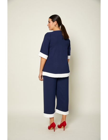 Conjunto de fiesta bicolor con blusón y pantalón tobillero